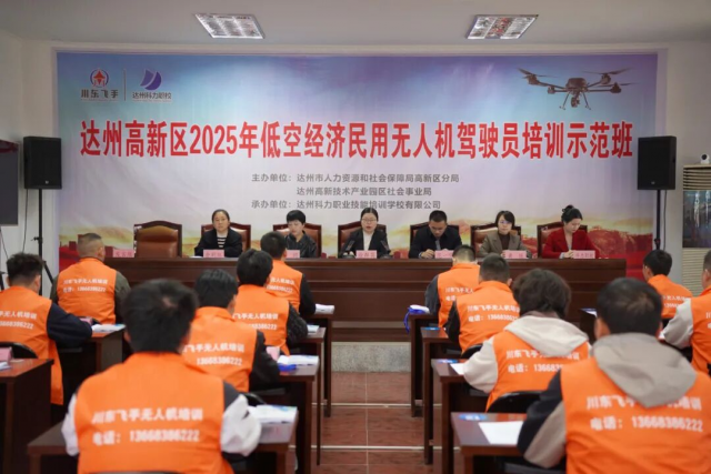 此次培训由达州市人力资源和社会保障局高新区分局、达州高新区社会事业局主办,是达州高新区培育低空经济技能人才的重要举措,旨在通过培训,精准弥补无人机专业领域人才短板,拓宽退役军人等重点群体就业路径,为全市低空经济发展注入专业人才动能。